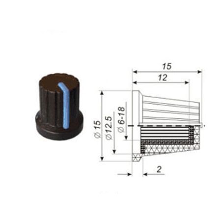 PERILLA 15x15mm NEGRA CON LINEA AZUL